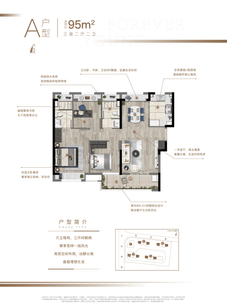 整个吴风宸樾府小区占地不算小,有3万4千多平米,盖了差不多9万8千平米的房子,规划了4栋26层的高楼和5栋17层的小高层,总共就520户,是个很纯粹、不拥挤的社区。这个165平的就更厉害了,做了双套房设计,家